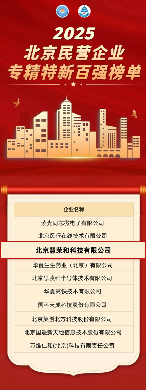 近日,由北京市工商联、北京市通州区人民政府联合主办的 2025 北京民营企业百强发布会正式召开,会上揭晓了 2025 北京民营企业专精特新百强榜。其中,北京慧荣和科技有限公司凭借在、领域的深耕细作及硬核创新实力,成功跻身该榜单,且位列第 32 名,这一成绩是对公司技术实力与行业引领地位的高度认可。
