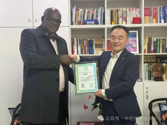 加纳驻华大使科乔·邦苏(Kojo Bonsu)与中尼经济协调中心办公室负责人李洪彦